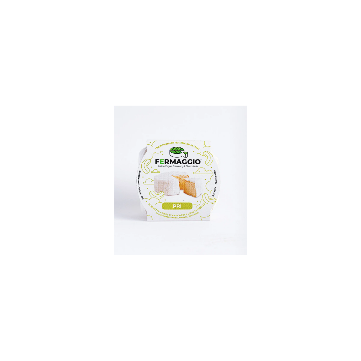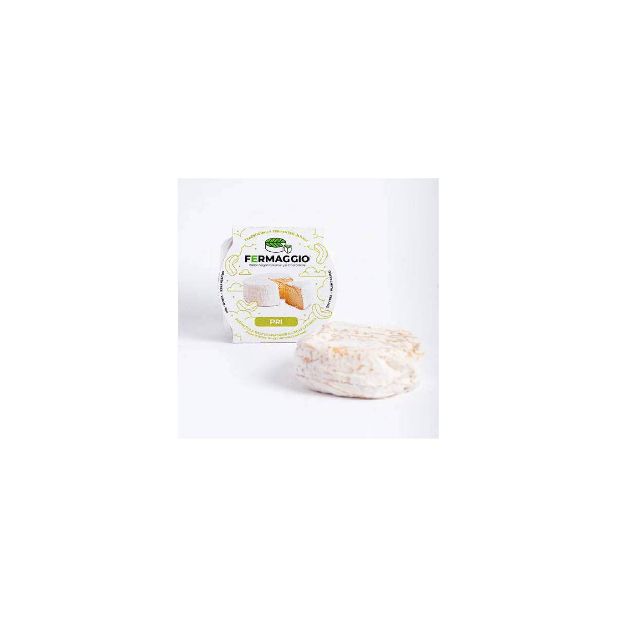 Il Pri è una preparazione morbida a base di anacardi fermentati che sviluppa una classica crosta fiorita bianca. La maturazione controllata dona un profilo aromatico delicato e una consistenza burrosa, ideale per chi cerca un’alternativa vegetale ai formaggi a crosta fiorita. Ideale su crostini, tartine e taglieri raffinati; si sposa con miele delicato (o alternative vegane), frutta fresca (uva, pere) e vini bianchi aromatici o spumanti leggeri.
