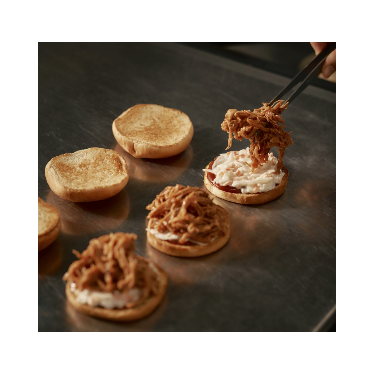 Provate il Pulled Pork Style di Novameat, una nuova generazione di tagli proteici pensati per ispirare le cucine di ogni tipo. Con una consistenza ricca e succosa che si separa senza sforzo, questo taglio è perfetto per i classici barbecue, i panini bao al vapore o come ricco piatto unico. La sua natura saporita e tenera lo rende perfetto per assorbire le note affumicate e speziate.