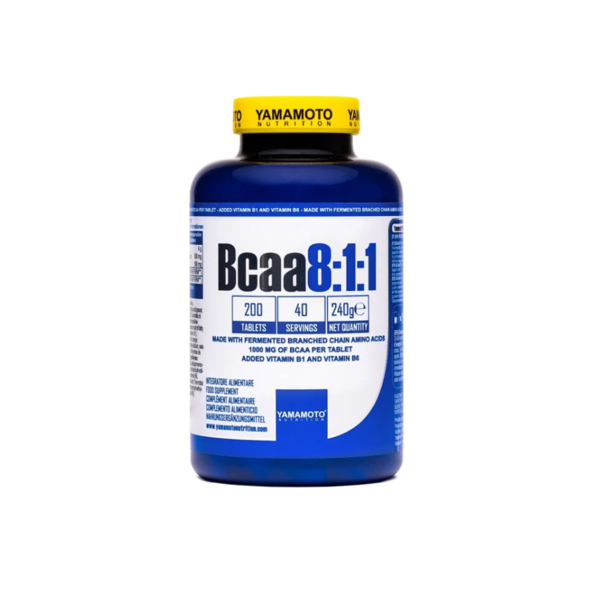 Yamamoto® Nutrition BCAA 8:1:1 è un integratore alimentare a base di aminoacidi a catena ramificata (BCAA – Branched Chain Amino Acid) con vitamine B1 e B6.