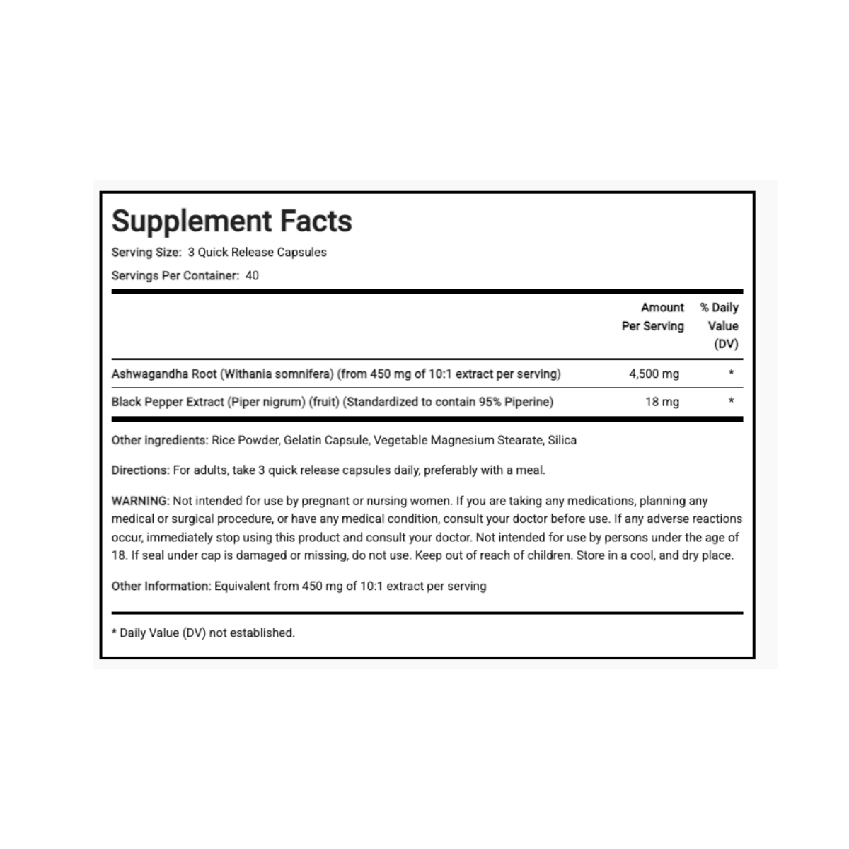 Ashwagandha 4500 mg (per porzione) 120 capsule a rilascio rapido