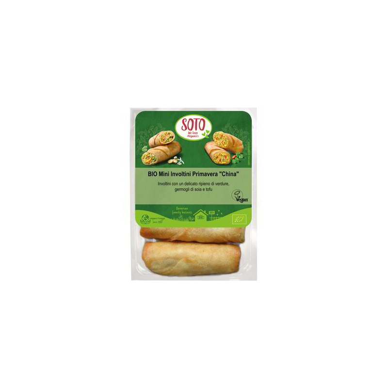 Mini involtini primavera bio Soto dal gusto agrodolce, croccanti e 100% vegetali, con un ripieno di verdure fresche e spezie naturali.
