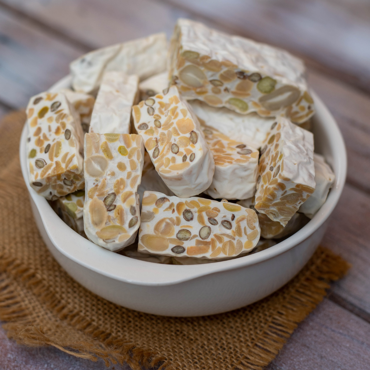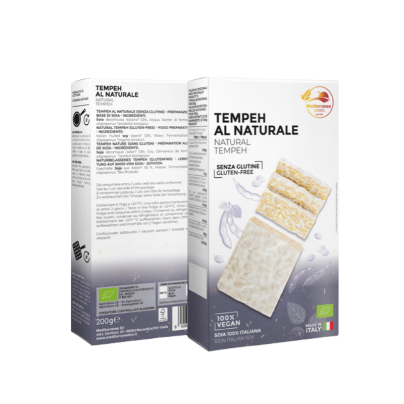 Originario del sud-est asiatico, il tempeh è ottenuto dalla fermentazione della soia gialla decorticata. Più digeribile della soia intera, è ricco di proteine e fibre, perfetto per una dieta sana ed equilibrata.