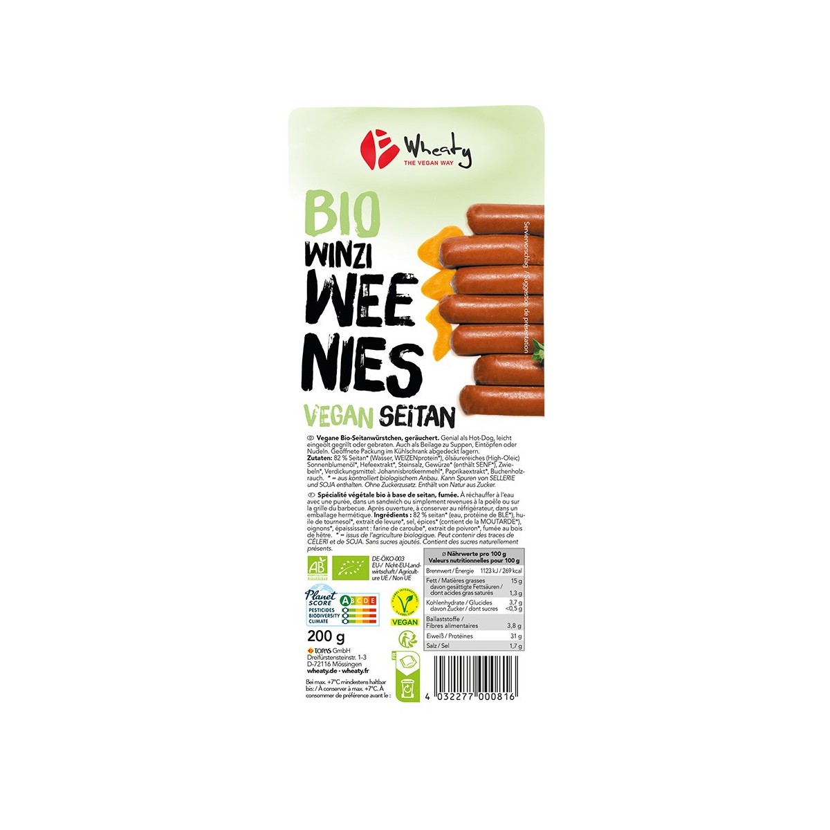 I gustosi “fratellini” dei Weenies, salsicce vegetariane affumicate tipo hot dog. Gusto intenso, affumicatura delicata. Adatte anche per stufati, zuppe e salse, sia per la cottura in padella o, ancora, nei pasticcini di pasta sfoglia.