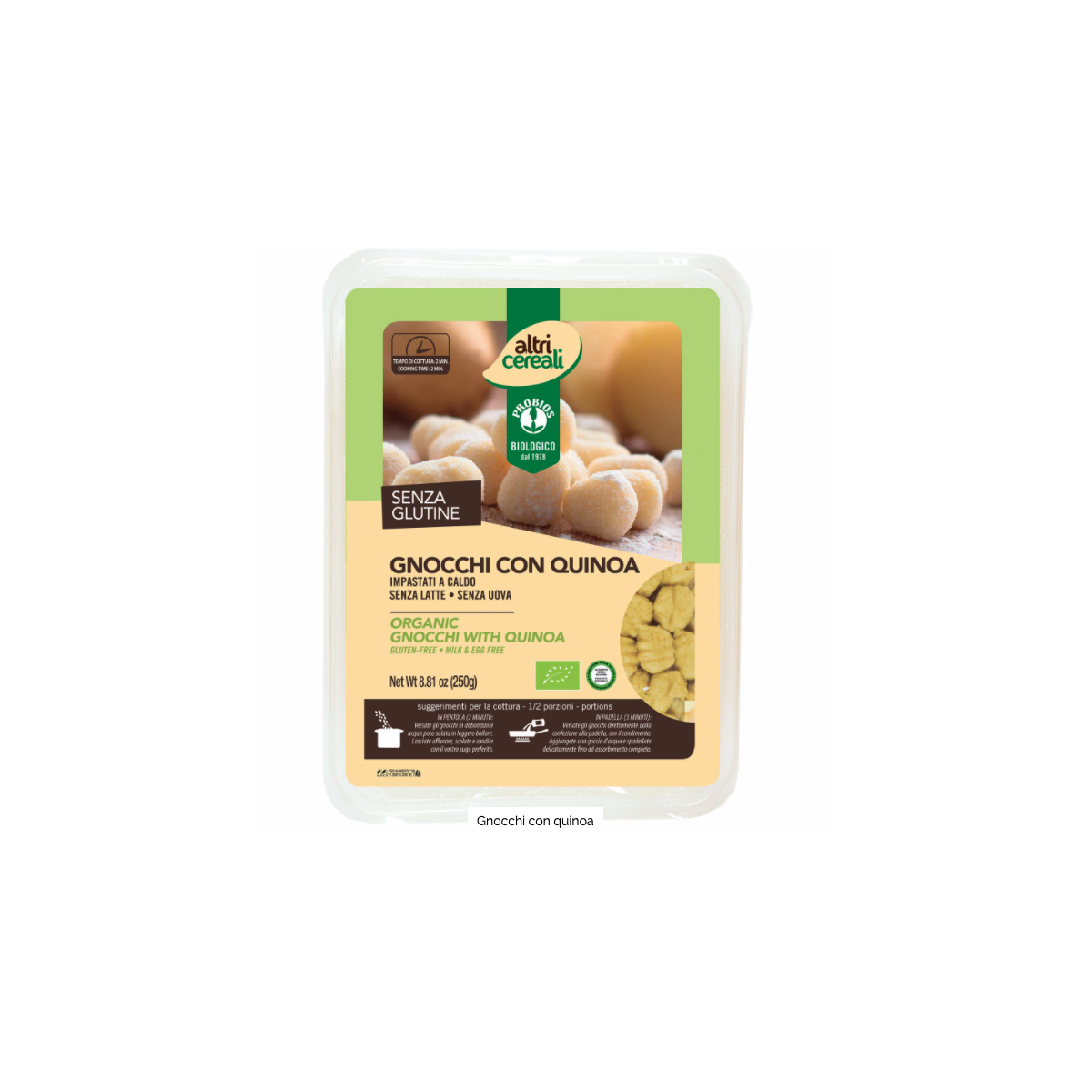 Gnocchi con Quinoa – senza glutine, vegan e biologici, pronti in pochi minuti, nutrienti e ideali per pasti sani e veloci.